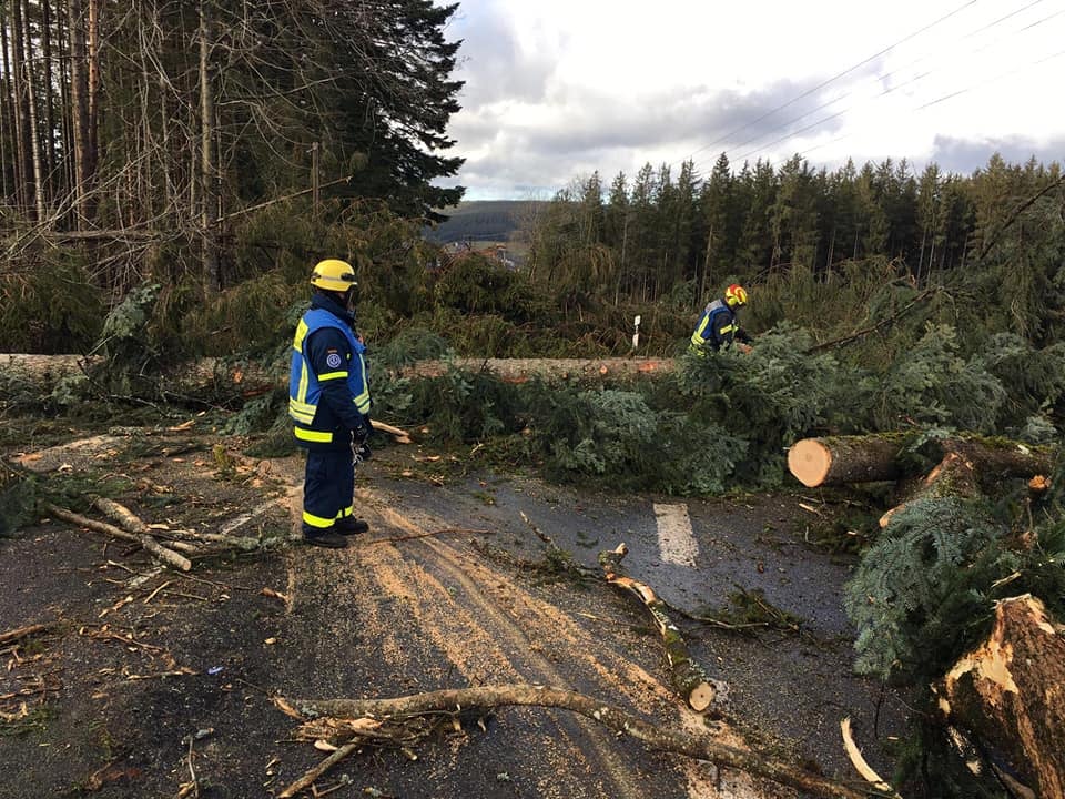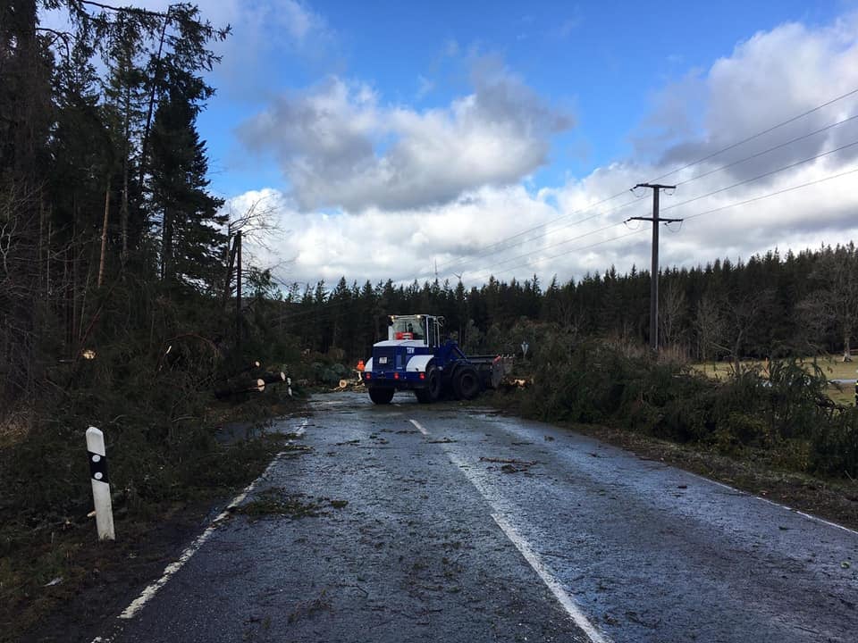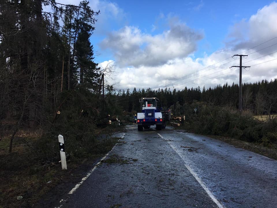 Dort war die Landstraße nach Langenschiltach so wie nach St.Georgen von ca. 20 bis 25 Bäume versperrt. Wir beräumten die Straßen mit unserem
