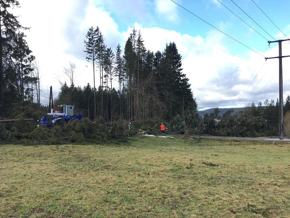 Radlader und Motorsägen mit der Hilfe der Feuerwehr St. Georgen Abteilung Peterzell.