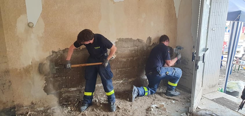 Die Aufgaben waren unter anderem eine Bäckerei auszuräumen und zu entkernen, so dass ein Lagerraum für Hilfsgüter entstehen konnte. Außerdem mussten wir ein Restaurant,